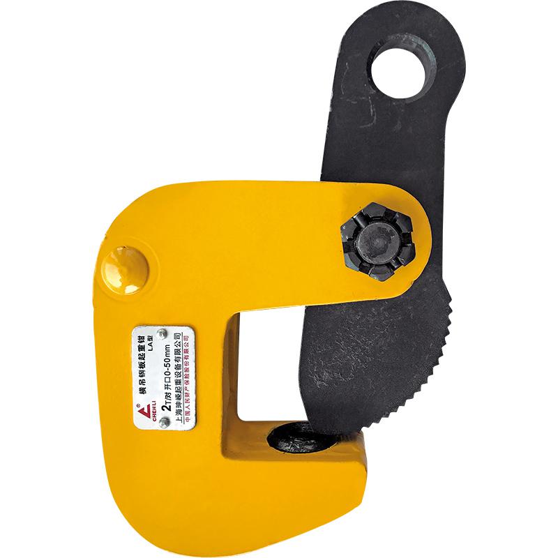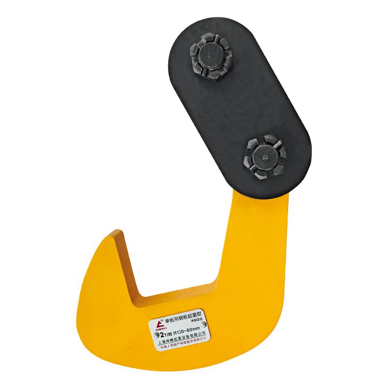 ★只能同時(shí)吊裝一塊鋼板,嚴(yán)禁層疊吊裝。起吊時(shí)須將拉環(huán)手柄向上,以使彈簧拉緊,卸荷時(shí)拉環(huán)手柄向下,彈簧放松后鉗子和鋼板才能分離。